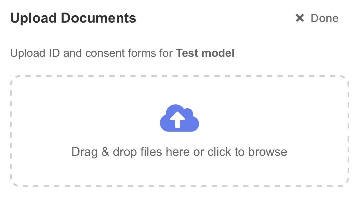 Click on the field, and select your files to add them. Once they upload, the screen should change to show ‘Consent Completed’ next to the icon of the model.